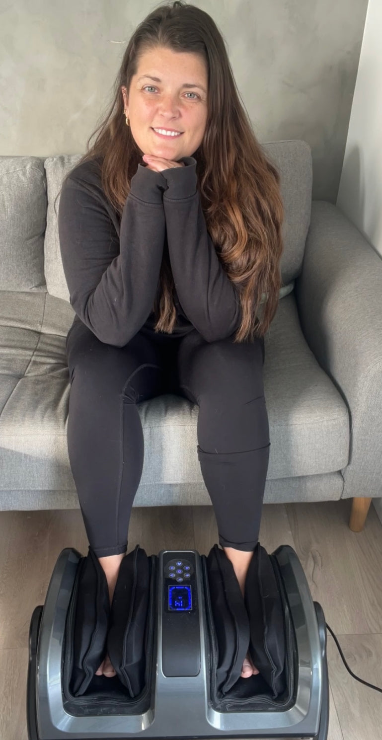 Omsluttende tryk omkring fødder og ankler stimulerer kredsløbet og hjælper kroppen til at slappe af.